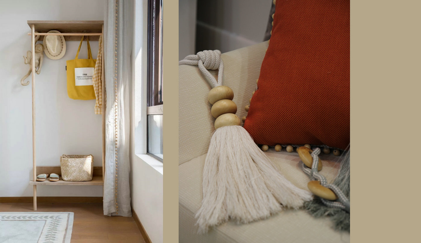 在色彩方面采用本真色彩,并將多種織造方式構成豐富質感,體現簡約、質樸的現代風格。
