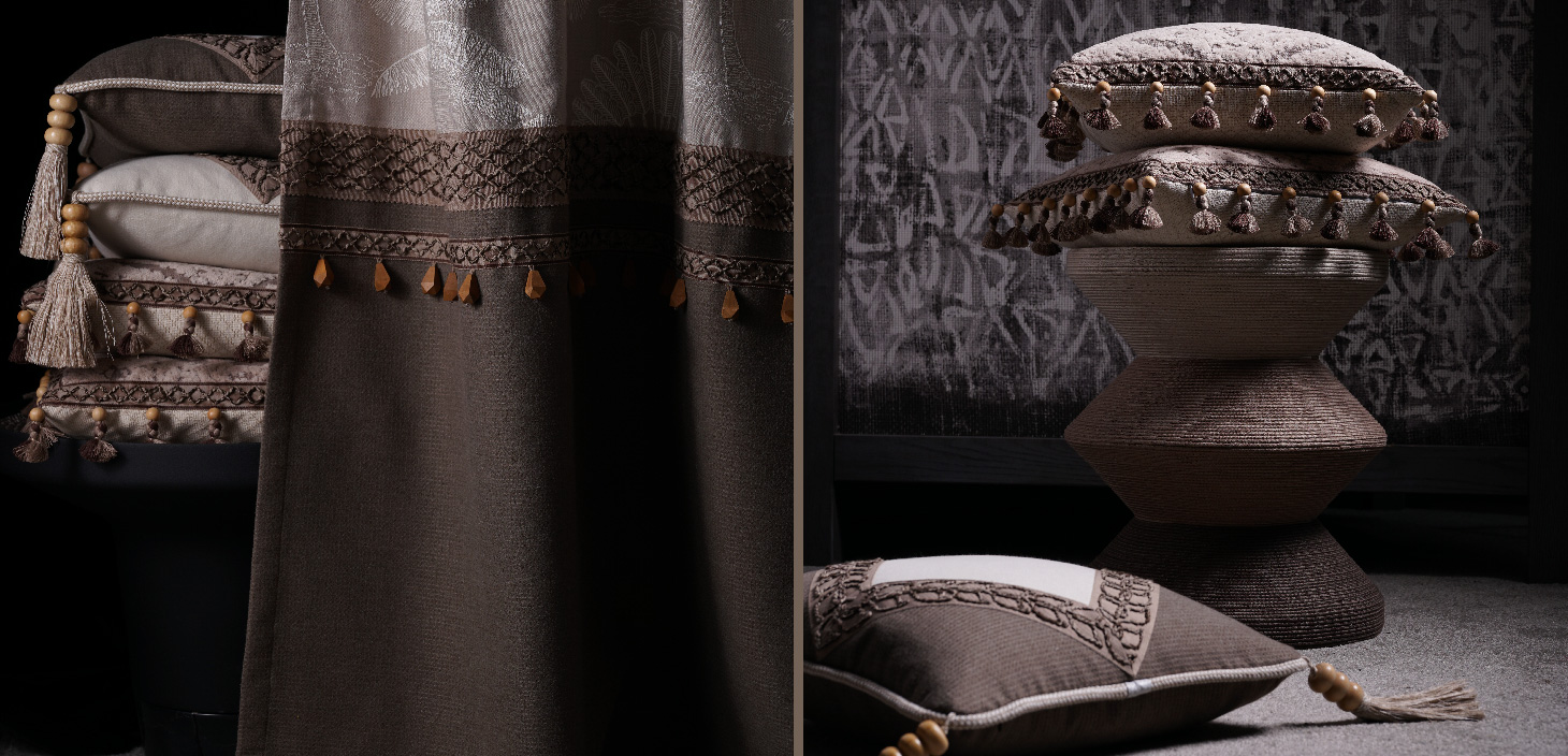 該系列產(chǎn)品花型立體感強(qiáng),大膽的運(yùn)用混色異型棉紗來(lái)營(yíng)造自然肌理感,可兼具多種工藝的視覺(jué)呈現(xiàn)和使用效果。